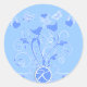 Pegatina Redonda Monograma Boda Pájaros Corazones girando azul