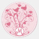 Pegatina Redonda Monograma Boda Pájaros Corazones Swirls Honeysuckl
