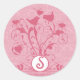 Pegatina Redonda Monograma Boda Pájaros Corazones Swirls Honeysuckl