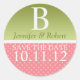 Pegatina Redonda Monograma Boda Rosa Verde Guardar La Fecha