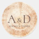 Pegatina Redonda Monograma Boda Rústico Personalizado de leña