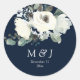 Pegatina de monograma redondo floral botánico azul y blanco. Da a tus invitaciones de boda ese toque especial con este pegatina floral, azul y blanco y redondo de marfil. con marina