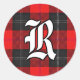 Pegatina Redonda Monograma clásico Ramsay Tartán rojo y negro