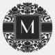 Pegatina Redonda Monograma con damasco negro y blanco