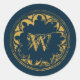 Pegatina Redonda Monograma con molestias de cosecha rugiana azul y