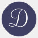 Pegatina Redonda Monograma D, blanco sobre azul marino,