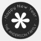 Pegatina Redonda Monograma de Año Nuevo Feliz | Negro