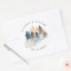 Pegatina Redonda Monograma de árboles de acuarela de montaña rústic