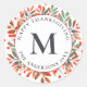 Nuestro moderno y elegante Pegatina Rojo Berries & Green Leaves Monograma Classic Round cuenta con un ilustracion acuarela de coloridas hojas otoñales en tonos amarillos, naranjas, rubor, salvia y verde verde azulado acentuado por bayas rojas maduras. Todo el texto del pegatina se puede actualizar para crear un accesorio único de envío de correo o de envoltura de regalo.
