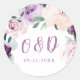 Pegatina Redonda Monograma de Boda floral púrpura floreciente