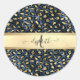 Pegatina Redonda Monograma de bronce negro patrón leopardo