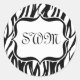 Pegatina Redonda Monograma de cebra blanca y negra funky