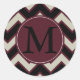 Pegatina Redonda Monograma de Chevron Negro con crema roja