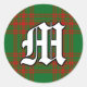 Pegatina Redonda Monograma de Clan Clásico Menzies Rojo y Tartán Ve