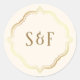 Pegatina Redonda Monograma de crema y Relieve metalizado dorado Orn