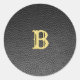 Pegatina Redonda Monograma de cuero negro falso personalizado