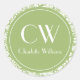 Pegatina Redonda Monograma de Damasco Verde Sage