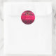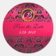 Pegatina Redonda MONOGRAMA DE DAMASK NEGRO PINO, rubí rojo, fucsia