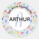 Pegatina Redonda Monograma de dinosaurio para niños y placa de iden