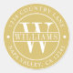 COLOR DE FONDO CAMBIABLE. Pegatina de dirección de devolución redonda con monograma elegante dorado y blanco.