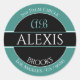Personalice este Pegatina de redondeo clásico, Verde azulado profundo, negro y blanco con su nombre, dirección y monograma en letras de guiones. Añada un toque personal con esta etiqueta de dirección de retorno a sobres, libros, bolsos, regalos y más. Para regalos y bolsos, puedes borrar la dirección.