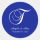 Pegatina Redonda Monograma de escritura azul blanco y real T