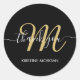 Pegatina Redonda Monograma de escritura de oro negro moderno gracia
