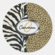 Pegatina Redonda Monograma de estampación de leopardo y cebra de Sa