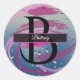 Pegatina Redonda Monograma de fiebre aftosa y pincel rosa suave