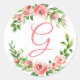 Pegatina Redonda Monograma de flor rosa con guiso monográfico