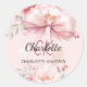 Pegatina Redonda Monograma de flores con lazo rosa sonrojo