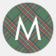 Pegatina Redonda Monograma de Green Tartan Plaid