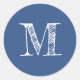 Pegatina Redonda Monograma de guión moderno azul clásico inicial
