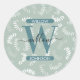 Pegatina Redonda Monograma de hojas botánicas verdes verde azuladas