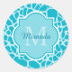 Pegatina Redonda Monograma de impresión turquesa moderno con nombre
