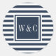 Pegatina Redonda Monograma de iniciales modernas azul marino y raya