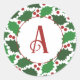 Pegatina Redonda Monograma de Jolly Holly rojo y verde