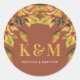 Pegatina Redonda Monograma de la boda otoñal ruciana marrón otoño