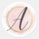 Pegatina Redonda Monograma de letra A rosa claro acuarela dorado ch