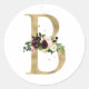 Pegatina Redonda Monograma de letra dorada flores boho burdeos