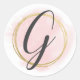 Pegatina Redonda Monograma de letra G rosa beis agua fuerte dorado