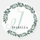 Pegatina Redonda Monograma de letra I con nombre personalizado y bo