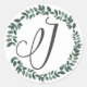 Pegatina Redonda Monograma de letra J, Corona de hojas botánicas mi