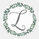 Pegatina Redonda Monograma de letra L, Corona de hojas botánicas mi