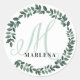 Pegatina Redonda Monograma de letra M Nombre personalizado Botánico