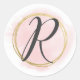 Pegatina Redonda Monograma de letra R Rosa Claro Acuarela Dorado Ch