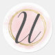 Pegatina Redonda Monograma de letra U rosa con acuarela dorada chic