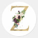 Pegatina Redonda Monograma de letras doradas flores boho borgoña Cl