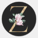 Pegatina Redonda Monograma de magnolia floral con letra de oro Z