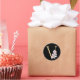 Pegatina Redonda monograma de magnolia floral en letra V dorada